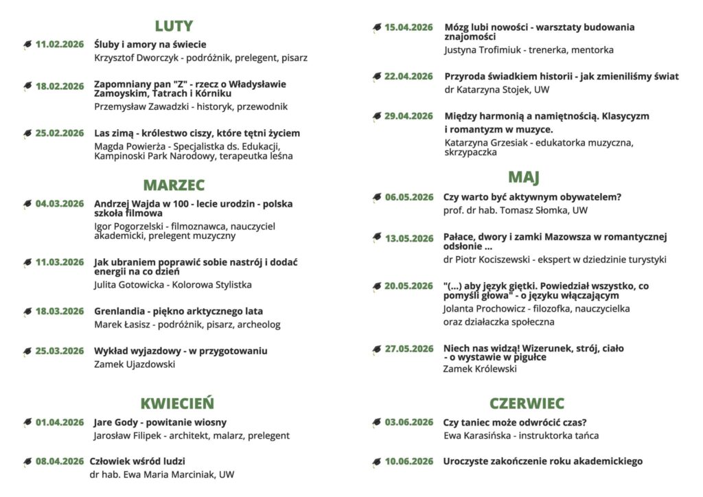 Dla osób, które nie są członkami ZUTW, istnieje możliwość uczestnictwa w wybranych wykładach – koszt jednego wykładu to 20 zł.