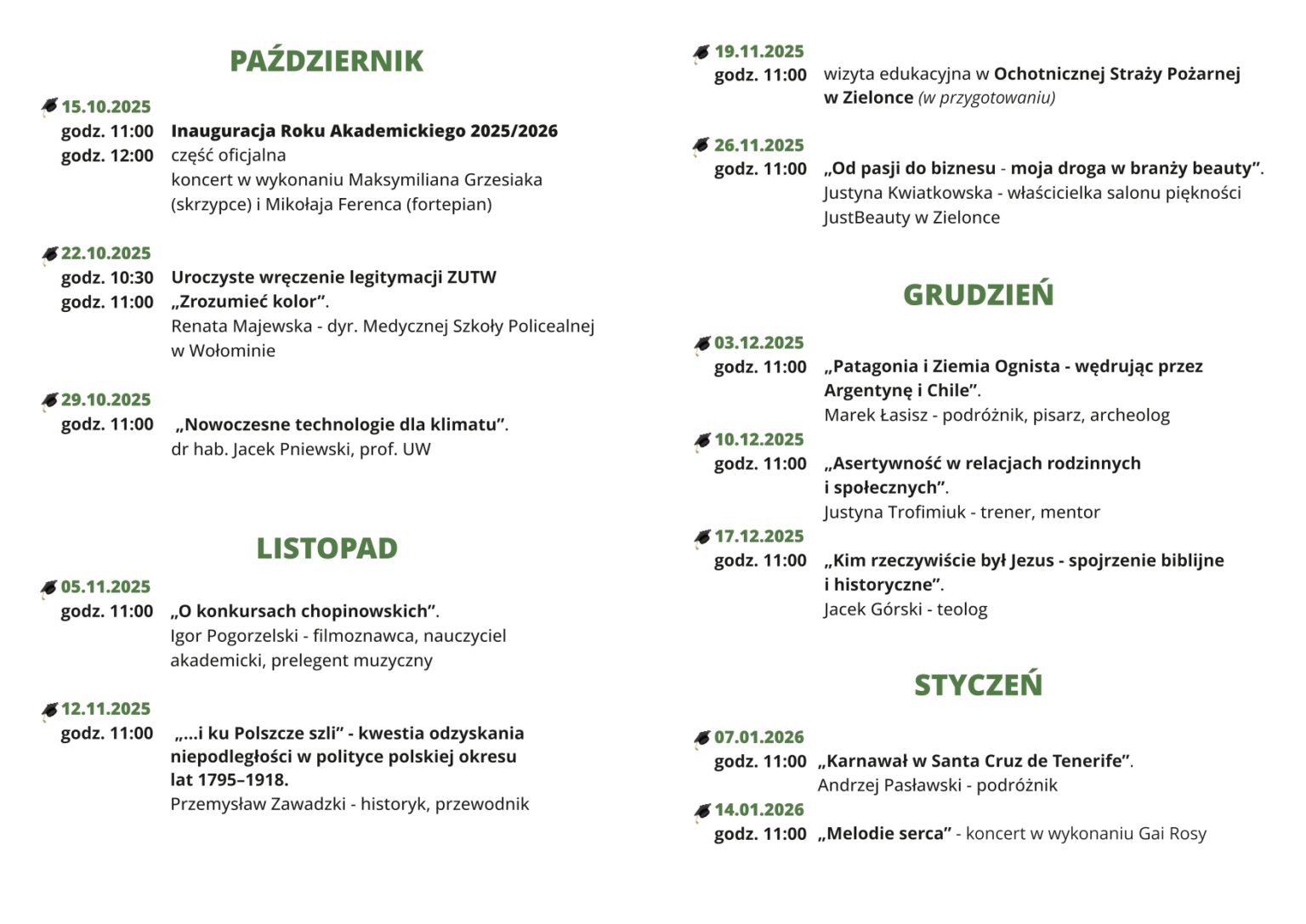 wraz z początkiem października spotkaliśmy się na oficjalnej prezentacji nowego semestru Zielonkowskiego Uniwersytetu Trzeciego Wieku. Już 15 października uroczyście zainaugurujemy nowy rok akademicki, a tydzień później rozpoczną się pierwsze zajęcia.